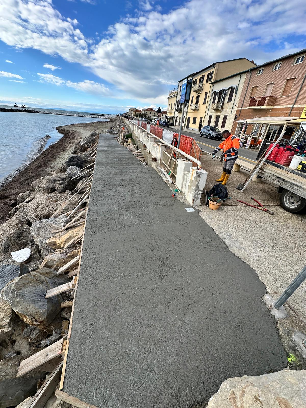 Si tratta di un intervento straordinario, eseguito da Pisamo, dopo che le mareggiate del mese di novembre hanno reso inutilizzabile la precedente; detto intervento permette di garantire, nel tempo, la stabilità, l’ancoraggio sulla scogliera esistente, la salvaguardia delle strutture dalle mareggiate.