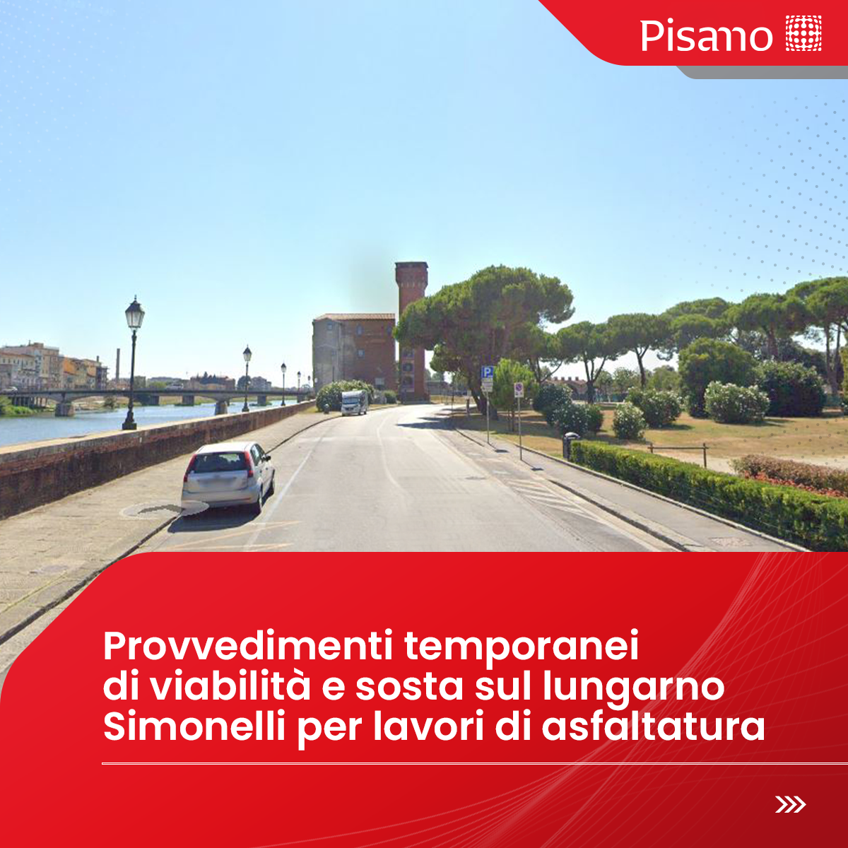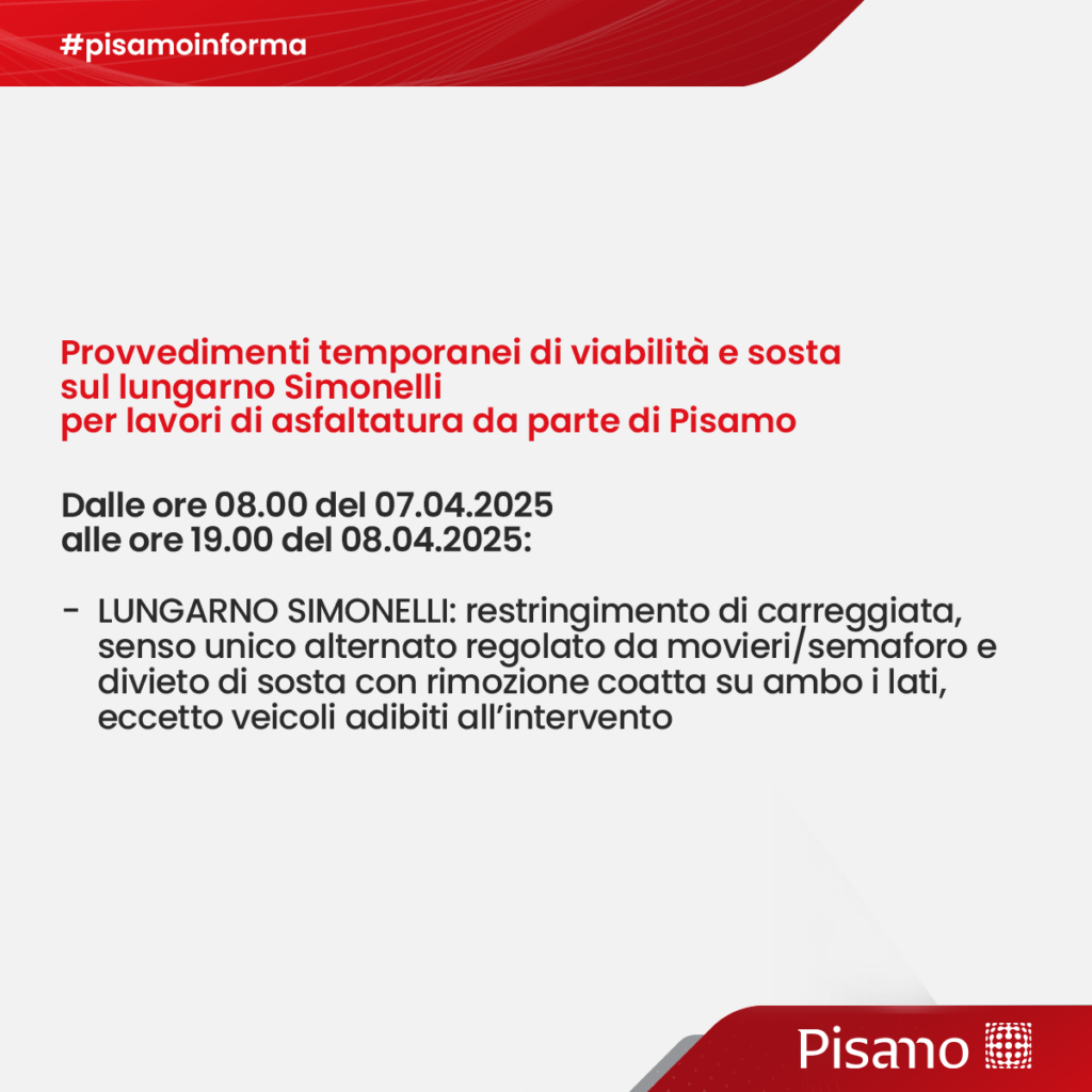 Provvedimenti temporanei di viabilità e sosta sul lungarno Simonelli per lavori di asfaltatura dal 7/04/2025 al 8/04/2025
