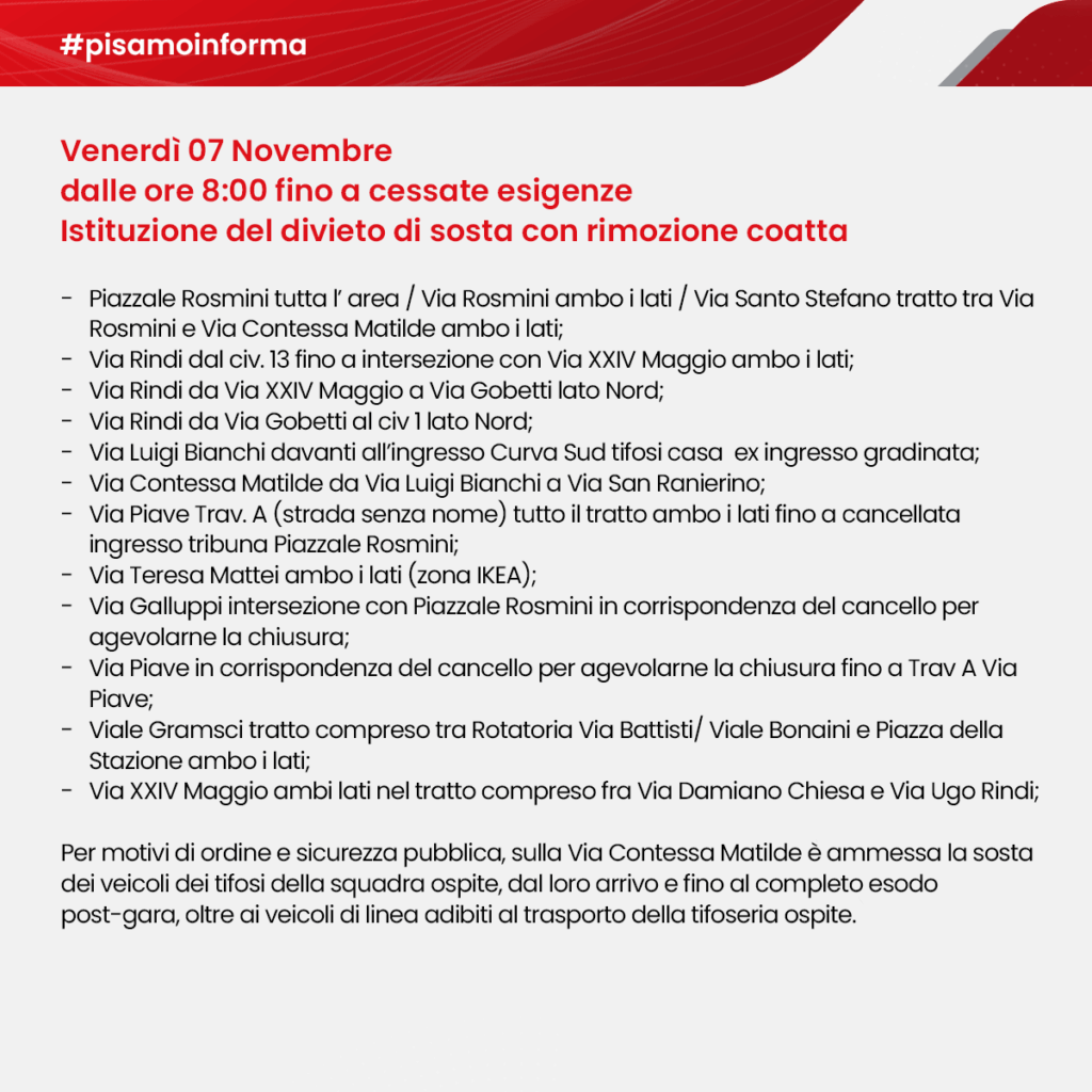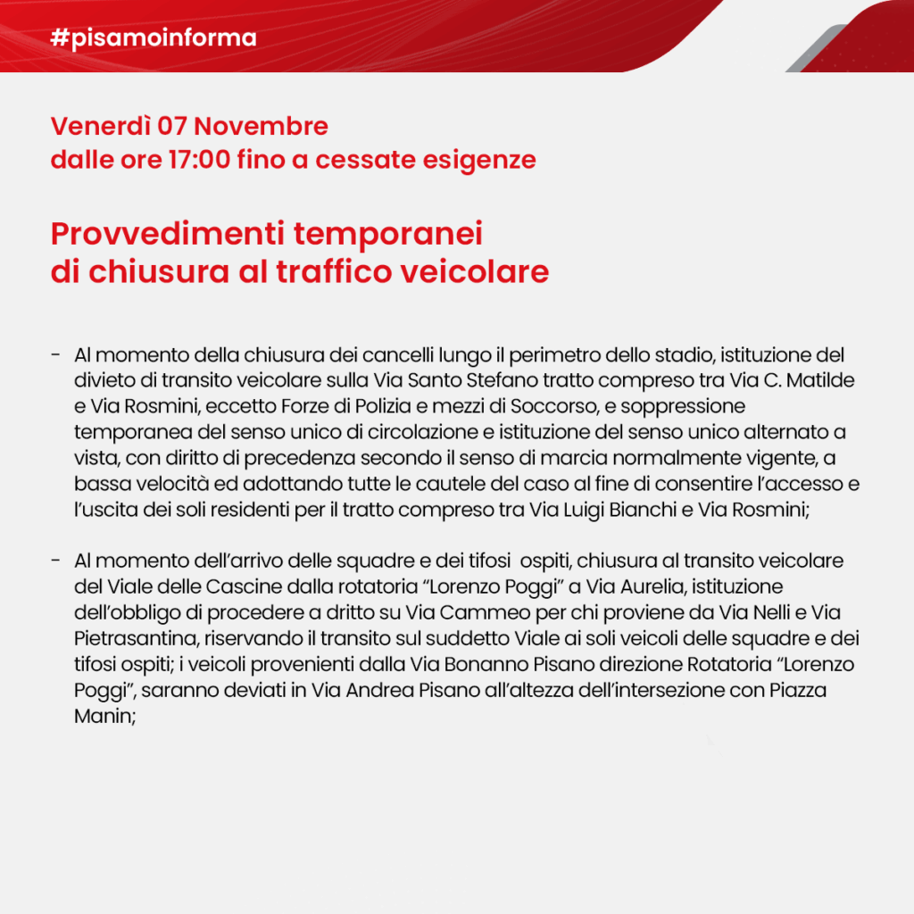 In occasione della partita Pisa-Cagliari in programma domenica 15 marzo, le telecamere della Zona a Traffico Limitato (ZTL) nel quartiere di Porta a Lucca saranno attive dalle ore 13.00. La gara, il cui orario è stato...