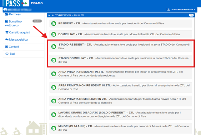 Seleziona AUTORIZZAZIONI – SOLO ZTL